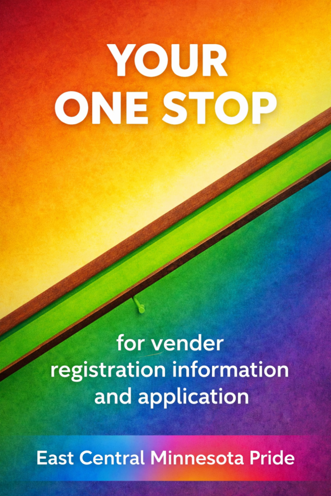 Hello! East Central Minnesota Pride is celebrating our 21st year and welcomes applications for booth space from community organizations, merchandise vendors, and service providers.